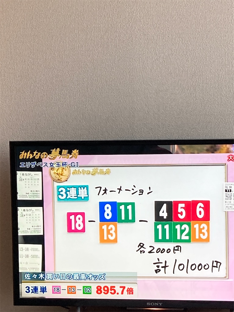 買い目としてはノームコア、リアアメリア、ラッキーライラックの3頭をボックスでワイドで1万円分買いました。